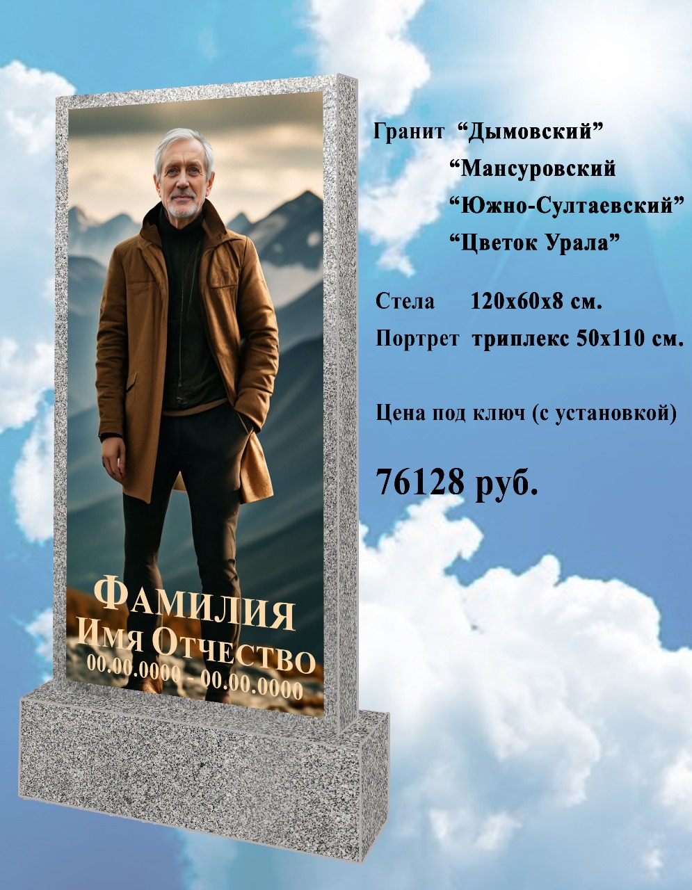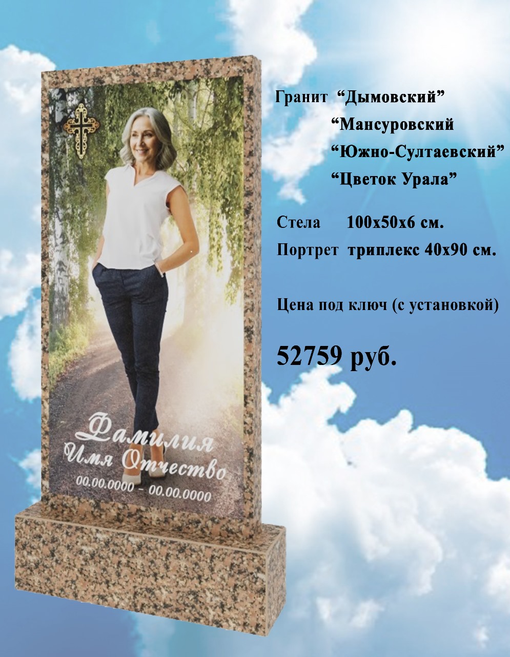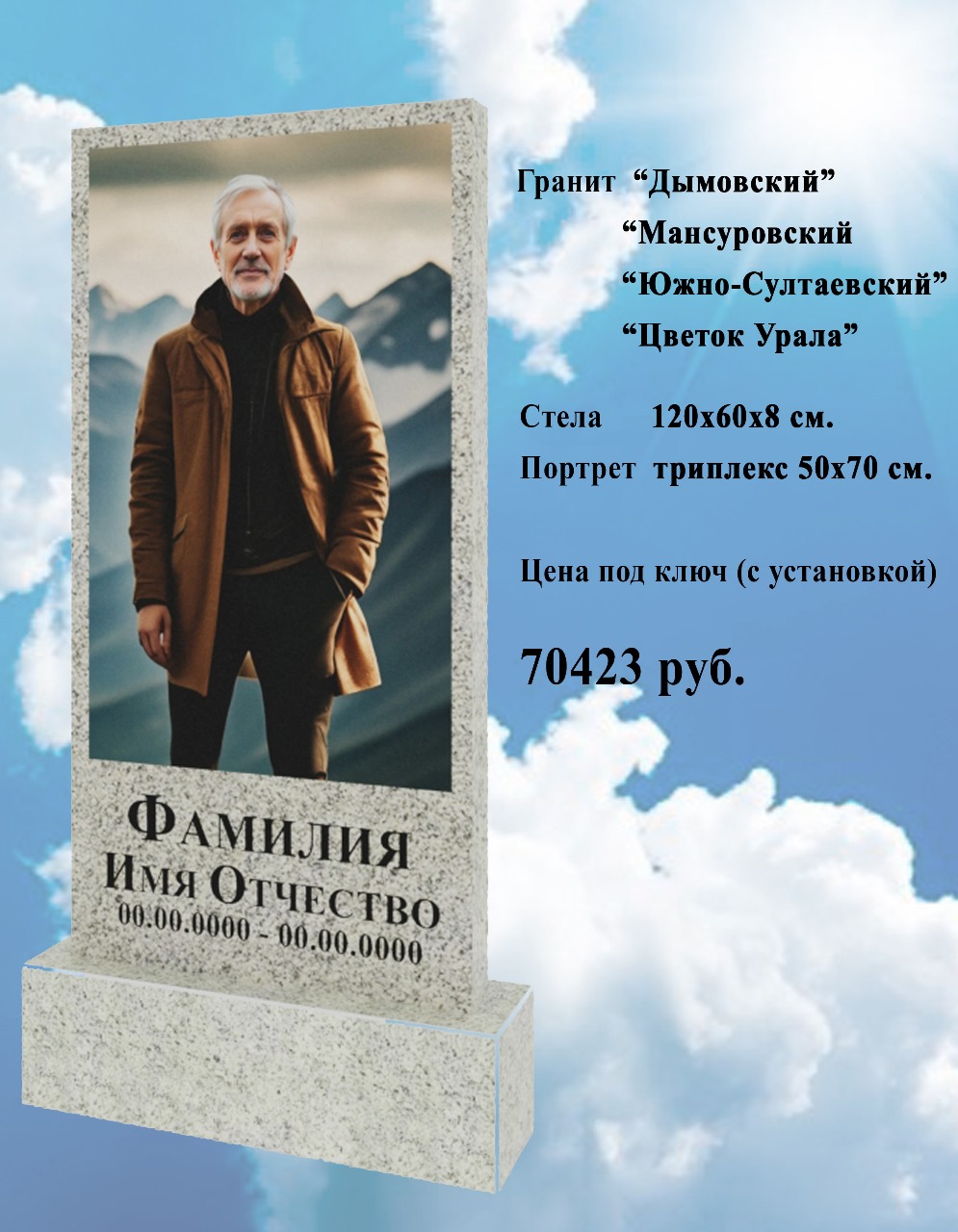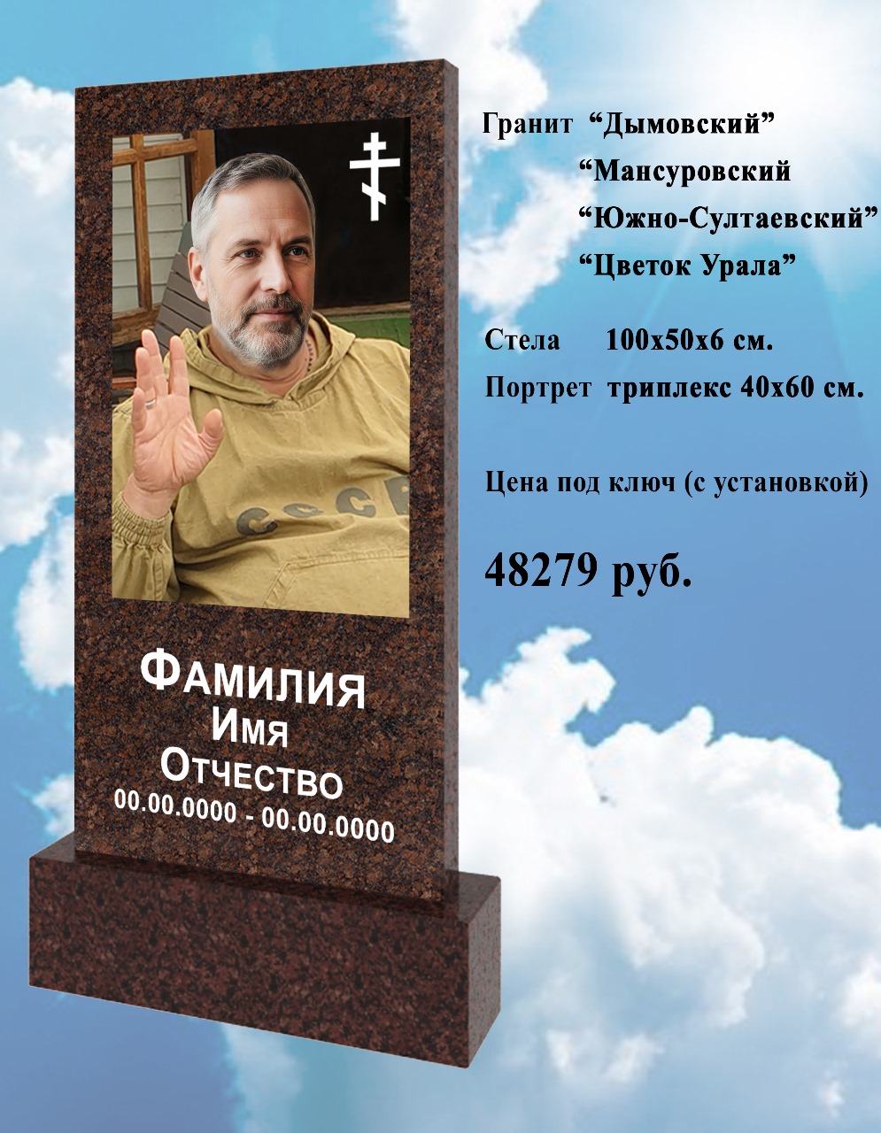 Портрет может быть выполнен, как путем гравировки на вставке из черного гранита, так и путем вставки фото умершего на триплексе или керамограните. Данный вариант является относительно молодым и высокотехнологичным.